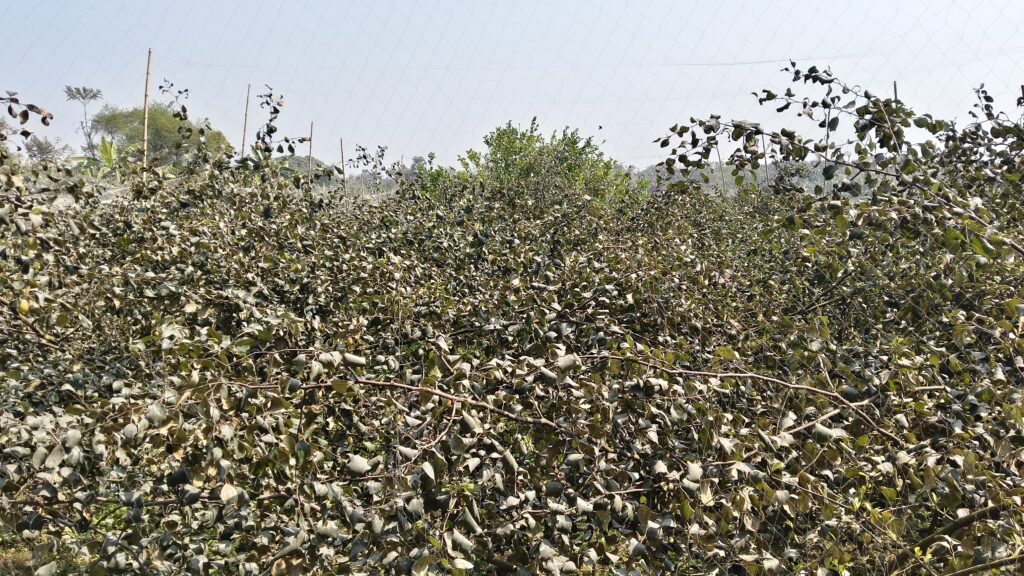 (ইসলামপুরে জাল বেধে কুলের চাষ। || নিজস্ব চিত্র।)