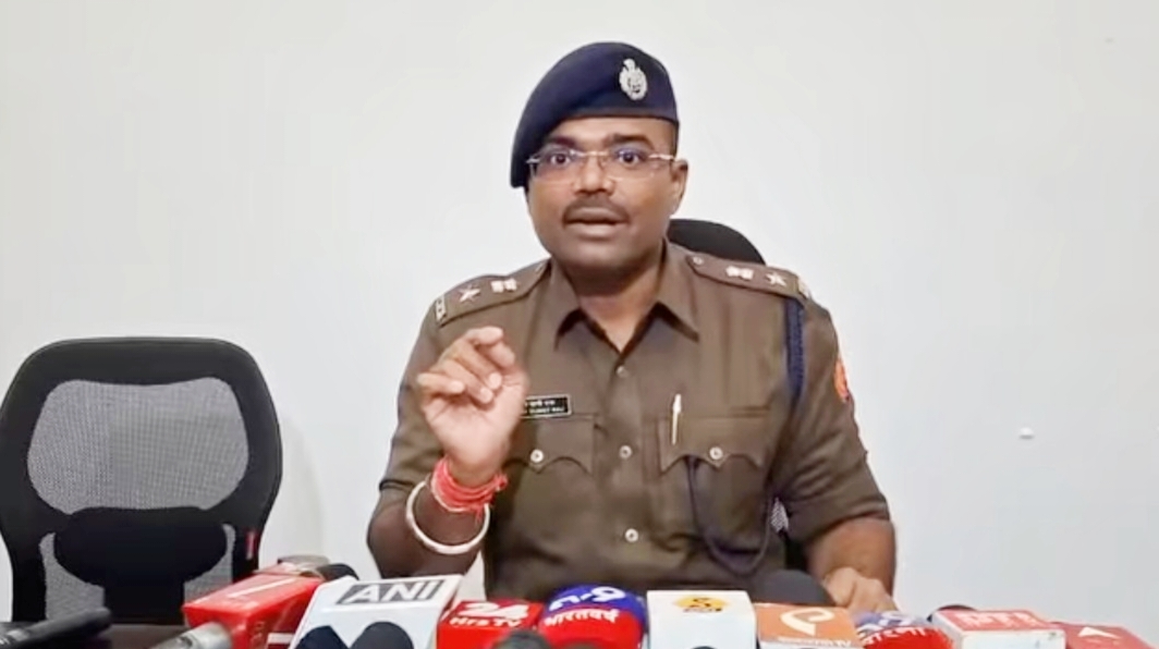 (সাংবাদিকদের মুখোমুখি পুলিশ সুপার কুমার সানি রাজ। || নিজস্ব চিত্র।)