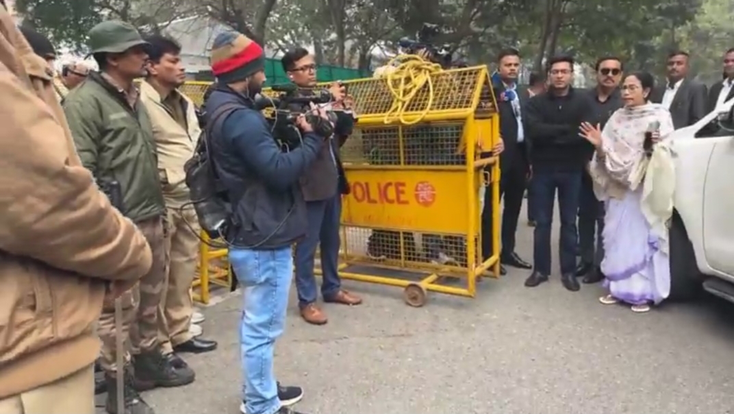 ডেইলি ডোমকল, নয়াদিল্লি: সোমবার সকালে দিল্লির চাণক্যপুরী এলাকার বঙ্গ ভবনকে কেন্দ্র করে এক নজিরবিহীন পরিস্থিতির সৃষ্টি হয়। এসআইআর (SIR) আবহে বাংলার বিভিন্ন প্রান্ত থেকে স্বজন হারানো প্রায় ১৫০ জন সদস্য বর্তমানে বঙ্গ ভবনে অবস্থান করছেন। অভিযোগ, এদিন সকাল থেকেই দিল্লি পুলিশ গোটা হ্যালি রোড ব্যারিকেড দিয়ে ঘিরে ফেলে এবং বঙ্গ ভবনের প্রতিটি ঘরে ঢুকে তল্লাশি শুরু করে। এই খবর পাওয়া মাত্রই ক্ষোভে ফেটে পড়েন তৃণমূল সুপ্রিমো মমতা বন্দ্যোপাধ্যায়। অভিষেক বন্দ্যোপাধ্যায়কে সঙ্গে নিয়ে তিনি সোজাসুজি হ্যালি রোডের বঙ্গ ভবনে পৌঁছে যান। ঘটনাস্থলে পৌঁছেই সাংবাদিকদের মুখোমুখি হয়ে কেন্দ্রীয় সরকারের বিরুদ্ধে তীব্র আক্রমণ শানান মমতা বন্দ্যোপাধ্যায়। সরাসরি কেন্দ্রীয় স্বরাষ্ট্রমন্ত্রী অমিত শাহকে নিশানা করে তিনি বলেন, “স্বরাষ্ট্রমন্ত্রীকে অনুরোধ করব, মাসল পাওয়ার (বাহুবল) দেখাবেন না। আপনি বাংলায় গেলে আমরা রেড কার্পেট পেতে দিই। কিন্তু আপনি যদি আমাদের জন্য ব্ল্যাক কার্পেট পেতে রাখেন, তবে আমরাও ‘ব্ল্যাক রেজাল্ট’ দেখিয়ে দেব।” মুখ্যমন্ত্রী সাফ জানান, বঙ্গ ভবন পশ্চিমবঙ্গ সরকারের সম্পত্তি। সেখানে দিল্লি পুলিশ ঢুকে তল্লাশি চালানো বা সাধারণ মানুষকে হেনস্তা করার কোনো অধিকার রাখে না। তাঁর কথায়, “ওরা গ্রামের সরল মানুষ। স্বজন হারিয়ে বিচারের আশায় দিল্লিতে এসেছে। তাদের ঘরে ঘরে ঢুকে পুলিশ বিরক্ত করছে কেন?” মমতা আরও হুঁশিয়ারি দেন, তাঁরা প্রতিবাদ জানাতে জানেন এবং পরিস্থিতি বাধ্য করলে তাঁরাও ‘ভয়ঙ্কর’ হয়ে উঠতে পারেন।