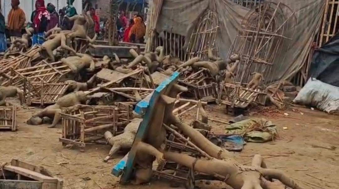 ডেইলি ডোমকল, ডিজিটাল ডেস্ক: নদিয়া জেলার শান্তিপুরে একাধিক হিন্দু দেবদেবীর প্রতিমা ভাঙচুরের ঘটনায় তদন্ত শুরু করেছে পুলিশ। আগামী বিধানসভা নির্বাচনের আগে এই ঘটনাকে ঘিরে রাজনৈতিক বিতর্কও দানা বেঁধেছে। একটি কুমোরের কর্মশালার বাইরে রাখা ছিল দেবী কালী ও দেবী সরস্বতীর মূর্তি। সেগুলোকে ভাঙচুর করা হয়েছে। পুলিশ সূত্রে খবর, ঘটনাটি ঘটেছে চলতি বছরের ৫ ও ৬ জানুয়ারি নদীয়ার শান্তিপুরের মাথালগড় এলাকায়। প্রায় ৩০ বছর ধরে ওই এলাকায় প্রতিমা তৈরি করে আসা কুমোর জয়ন্ত দাসের তৈরি প্রতিমাগুলিই ক্ষতিগ্রস্ত হয়। আসন্ন পূজা মরসুমের প্রস্তুতির অংশ হিসেবে দাস ও তাঁর পরিবার আগমেশ্বরী তলা এলাকায় কর্মশালার সামনে রাস্তার ধারে বেশ কয়েকটি প্রতিমা রেখে দিয়েছিলেন। ঘটনার কথা জানিয়ে জয়ন্ত দাস বলেন, “সকালে উঠে দেখি অন্তত ৬০ থেকে ৭০টি প্রতিমা পুরোপুরি ভেঙে ফেলা হয়েছে। তার বেশিরভাগই কালী ও সরস্বতীর প্রতিমা। এটা দেখে আমার মন ভেঙে গেছে, কারণ এটাই আমার জীবিকা।”